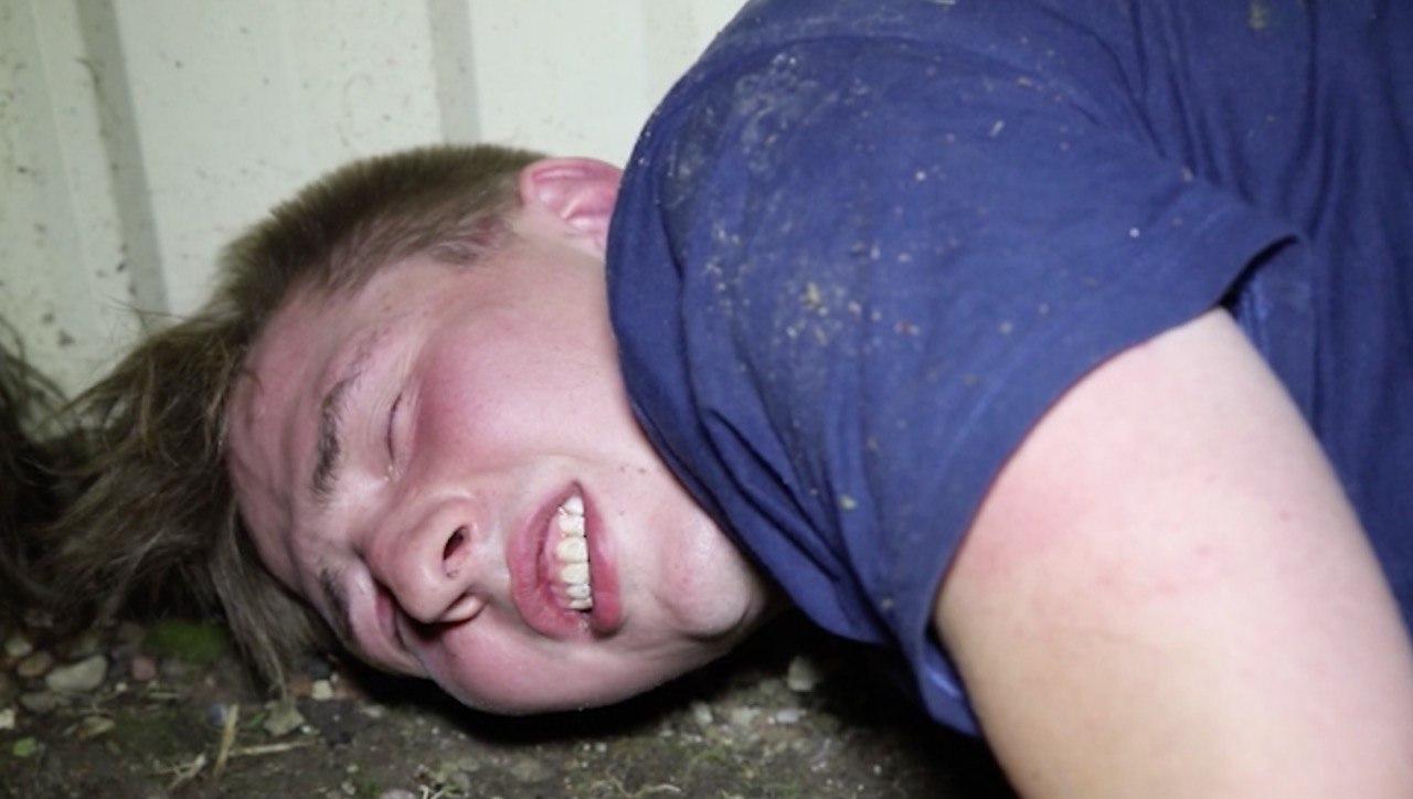 На записи видны люди, которые лежат или сидят на четвереньках лицом в пол. У одного из задержанных можно разглядеть нацистские татуировки, в том числе со свастикой. Его лицо в крови.